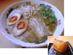 味玉は味付けが程良いだけでなくて黄身が甘い半熟状態で、かといって横にしても黄身が流れ出る事の無い、