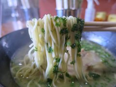 腰が弱めで、表面ツルツルの自家製麺が優しいスープに合います^^